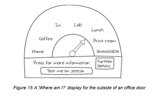 (a) This part of the question is about improving an initial prototype graphical user interface (GUI) design for a desktop computer application to control a ‘Where am I?’ display for the outside of an office door. Read the descriptions below and then answer the questions that follow.
