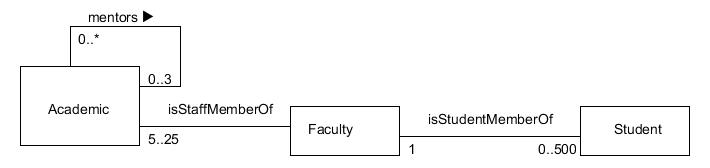 An academic belongs to a single faculty and may be mentored by other academics who must be in the same faculty.